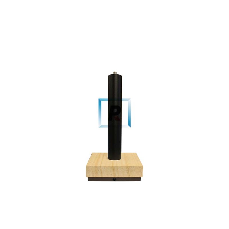 La base es de piedra arenisca de 150x150x30mm y la columna es de tubo de hierro redondo de 40mm de diámetro y 200mm de alto, está pintado con pintura al horno de color negro texturizado.