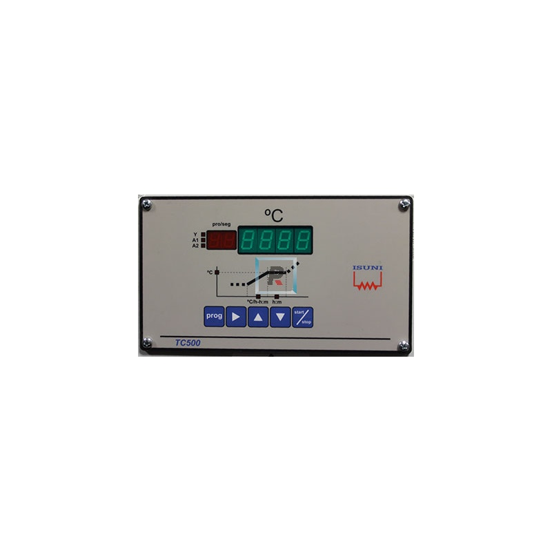 El TC 500 es capaz de almacenar hasta 9 curvas de cocción de hasta 18 segmentos cada una. Cada segmento está compuesto por una rampa (de subida o de bajada de temperatura) y un mantenimiento. El TC 500 dispone de la posibilidad de programar la puesta en marcha de forma diferida, para aprovechar, si es el caso, las tarifas nocturnas. Dispone también de 2 salidas auxiliares de relé, programables en función de la temperatura (absoluta o relativa).