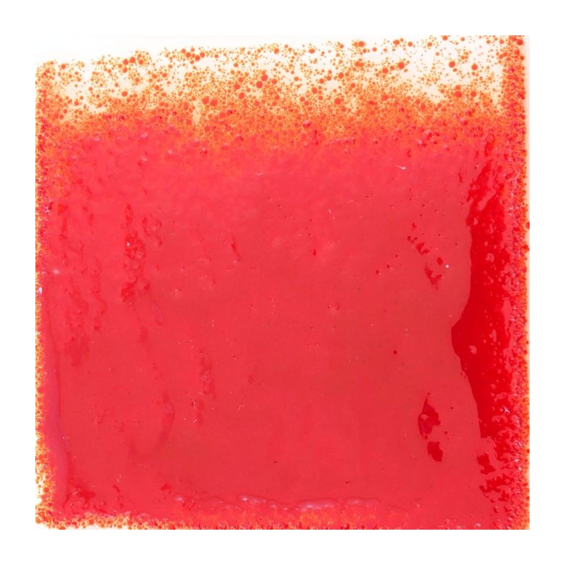 Para que tenga una visión de cual será el color final despues de fundido observe el cuadrado de color en la fotografía y también la fotografía del vidrio fundido.