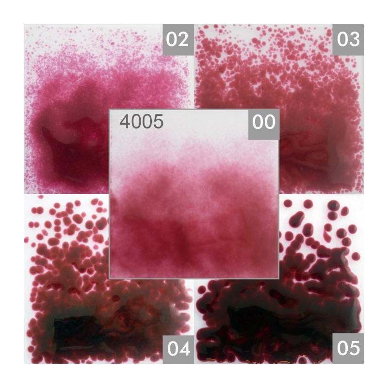 Dentro de un mismo color puede que su tono y transparencia después de fundido no sea el mismo en todos los grosores de los granos.