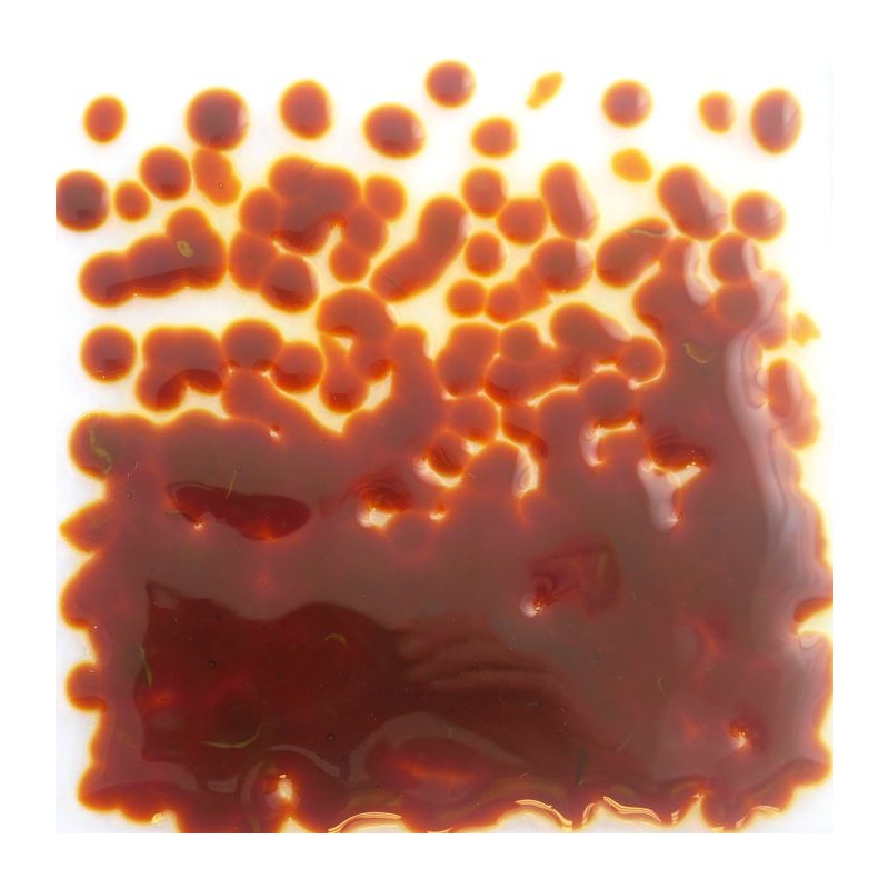 Para que tenga una visión de cual será el color final despues de fundido observe el cuadrado de color en la fotografía y también la fotografía del vidrio fundido.