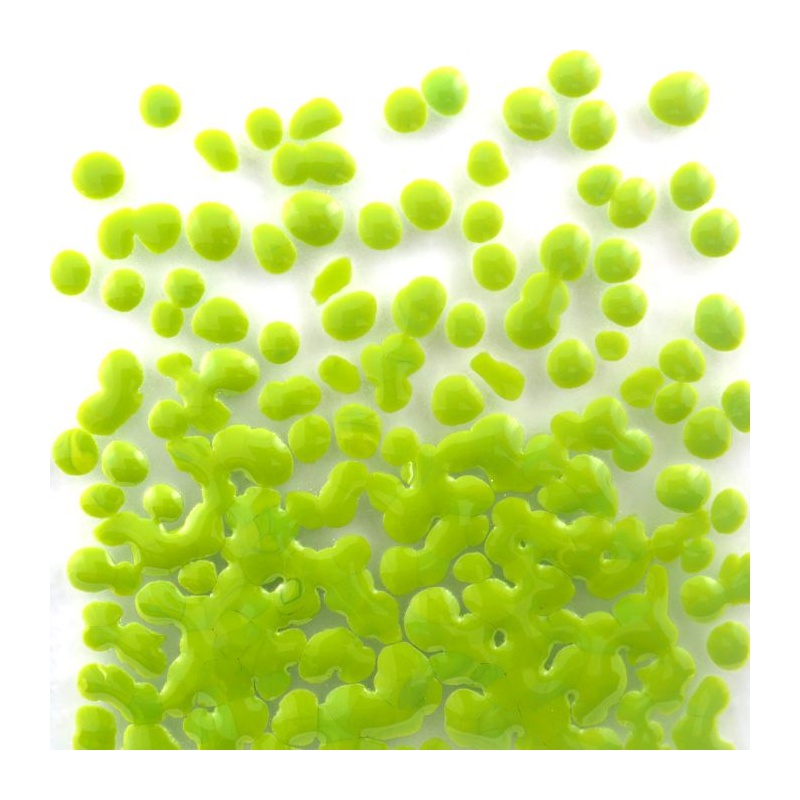 Dentro de un mismo color puede que su tono y transparencia después de fundido no sea el mismo en todos los grosores de los granos.